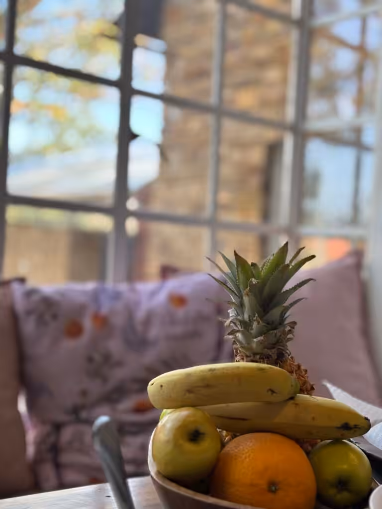 Das Küchenteam von Krumhuk zaubert ausgewogene Gerichte, vollgepackt mit wertvollen Mikro- und Makronährstoffen, die Körper und Seele ins Gleichgewicht bringen. Alle Zutaten stammen frisch aus eigenem biodynamischem Anbau und artgerechter Haltung – gewachsen unter afrikanischer Sonne, voller Lebenskraft und Natürlichkeit. So versorgst du dich mit reiner Energie aus der Natur und schenkst deinem Körper alles, was er für Balance, Heilung und Vitalität braucht. Jede Mahlzeit wird zu einem heilsamen Ritual – ein Genussmoment, der dich erdet, stärkt und dir neue Lebenskraft schenkt.